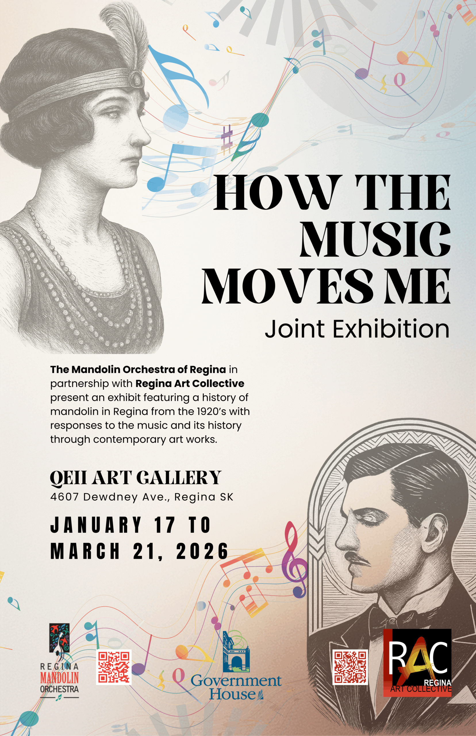 The Mandolin Orchestra of Regina in partnership with Regina Art Collective present an exhibit featuring a history of mandolin in Regina from the 1920’s with responses to the music and its history through contemporary art works.